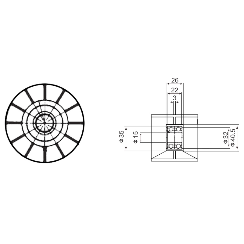Tá an sorcóir tacaíochta déanta as níolón mar phríomhábhar. Tá friotaíocht caitheamh den scoth ag níolón, féin-lubrication, friotaíocht creimeadh, agus friotaíocht maith tionchair. Ligeann sé seo don sorcóir brú seasamh in aghaidh caitheamh le linn úsáide fadtéarmach, teas agus torann de bharr cuimilte a laghdú, agus feidhmíocht chobhsaí a chothabháil; Tá an sorcóir tacaíochta feistithe le imthacaí liathróid groove domhain múnla 6202, a bhfuil struchtúr simplí aige, atá éasca le monarú, agus tá cumas ualachiompartha ard aige. Láidir; tá trastomhas seachtrach agus airde an sorcóir tacaíochta araon 70mm. Déanann an dearadh méide seo an sorcóir brú crios oiriúnach do bhrú crios, do threoir, agus do thascanna eile le héagsúlacht trealamh meicniúil.
