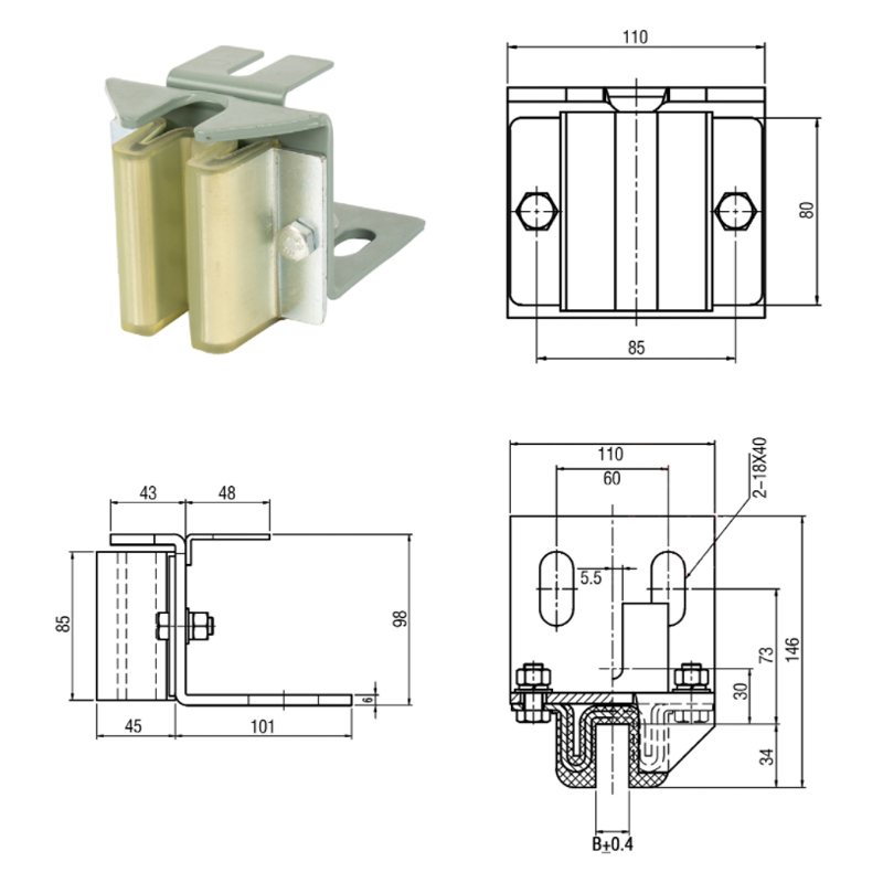 Tá bróga treorach frithmheáchain Mitsubishi deartha le haghaidh ardaitheoirí le luasanna oibriúcháin nach mó ná 1.75m / s, rud a chinntíonn a gcobhsaíocht i réimse na n-ardaitheoirí meán agus íseal-luas. Is féidir leis an bróg treorach dhá shainiúlacht éagsúla de ráillí treorach, 10mm, agus 16.4mm a mheaitseáil, agus tá sé caitheamh-resistant agus creimeadh-resistant. Is féidir le teicneolaíocht laghdaithe creathadh an bróg treorach torann agus creathadh a laghdú go suntasach, feabhas a chur ar chompord na bpaisinéirí; Tá an dearadh struchtúrach réasúnta, tá an próiseas suiteála simplí agus tapa, agus tá an cothabháil sách éasca.